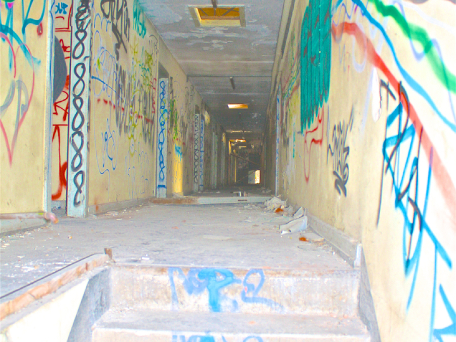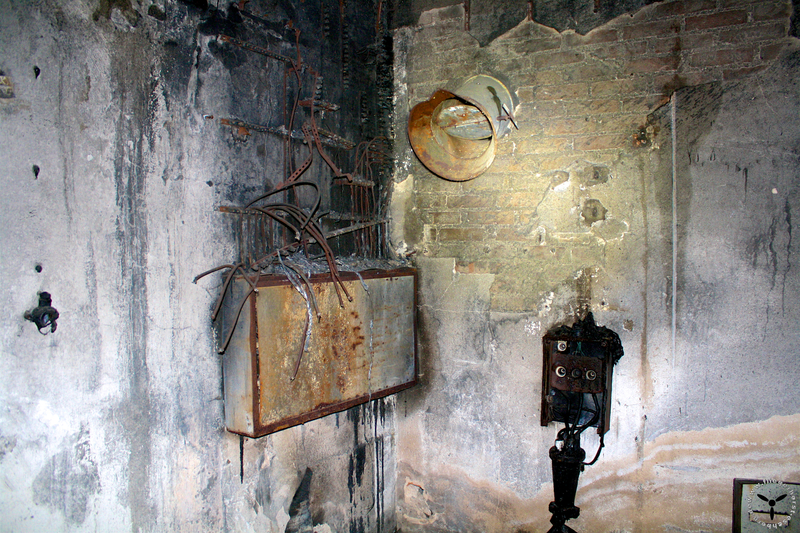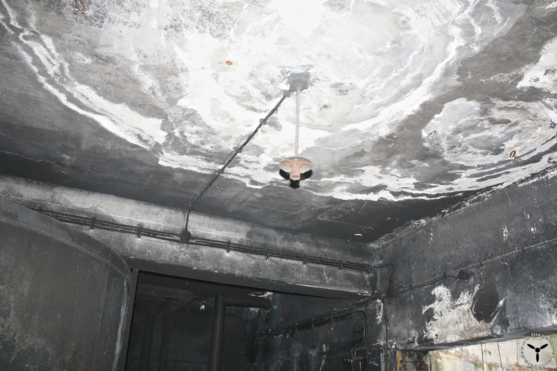 Überflüssigerweise wurde der Keller auch noch dazu genutzt die Isolierung abzubrennen, um so an das wertvolle Kupfer zu gelangen. Unter anderem sind die Räume deshalb heute so stark verrußt.