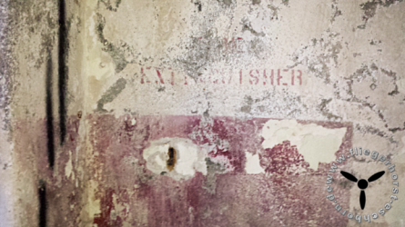 Abb.17: In einem der seitlichen Räume ist eine Kennzeichnung aufgetaucht, an dem die Amerikaner seinerzeit einen Feuerlöscher (FIRE EXTINGUISHER) platziert hatten.